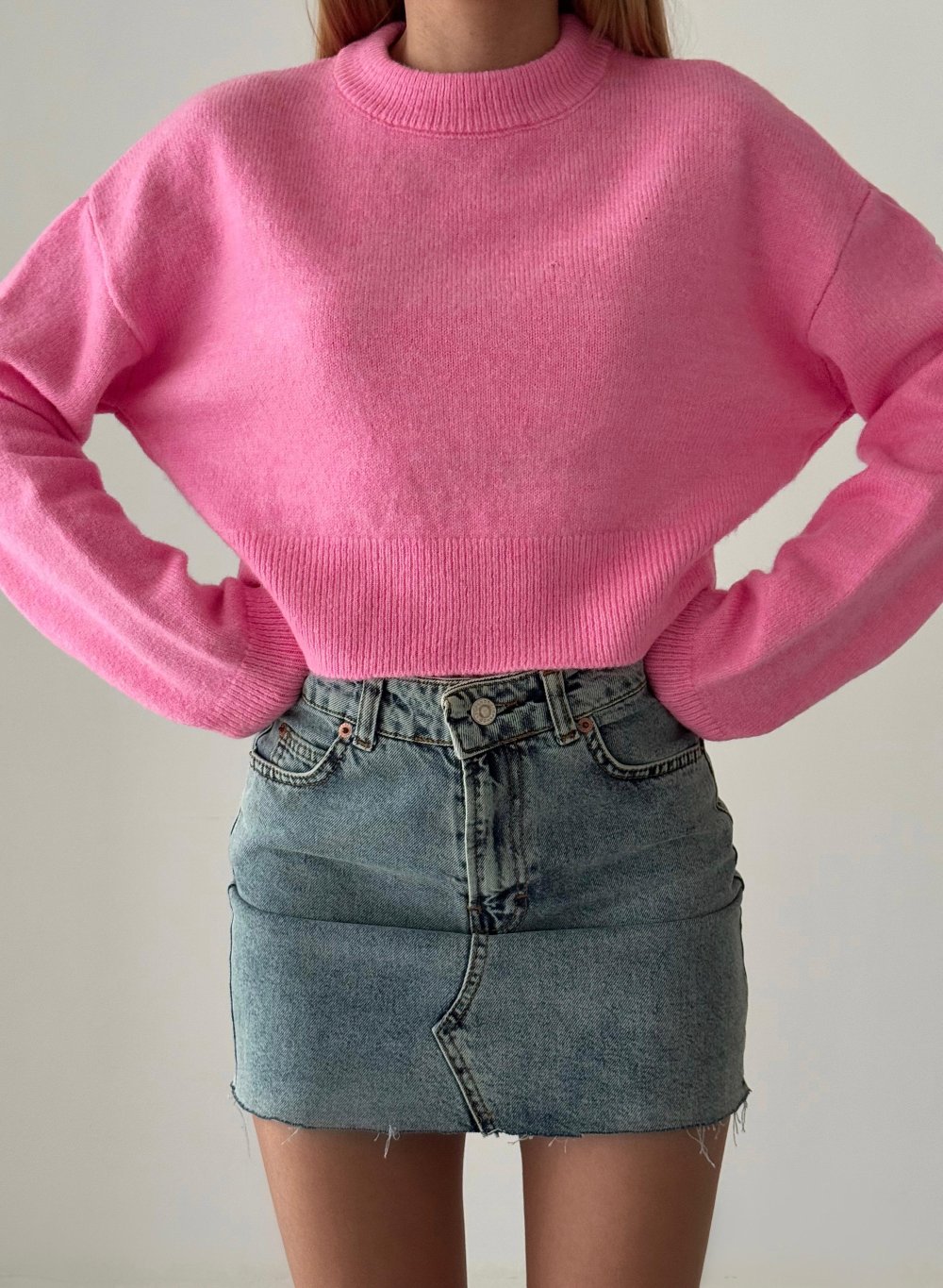 Alise Bisiklet Yaka Crop Kazak Pembe