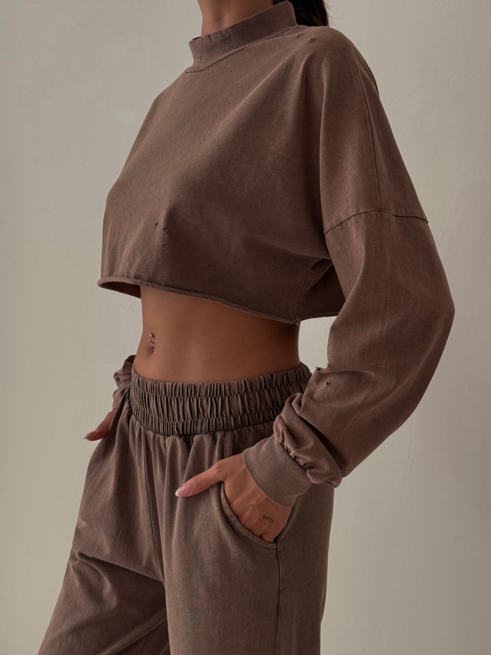 Alita Yırtık Detaylı Yıkamalı Takım Kahverengi