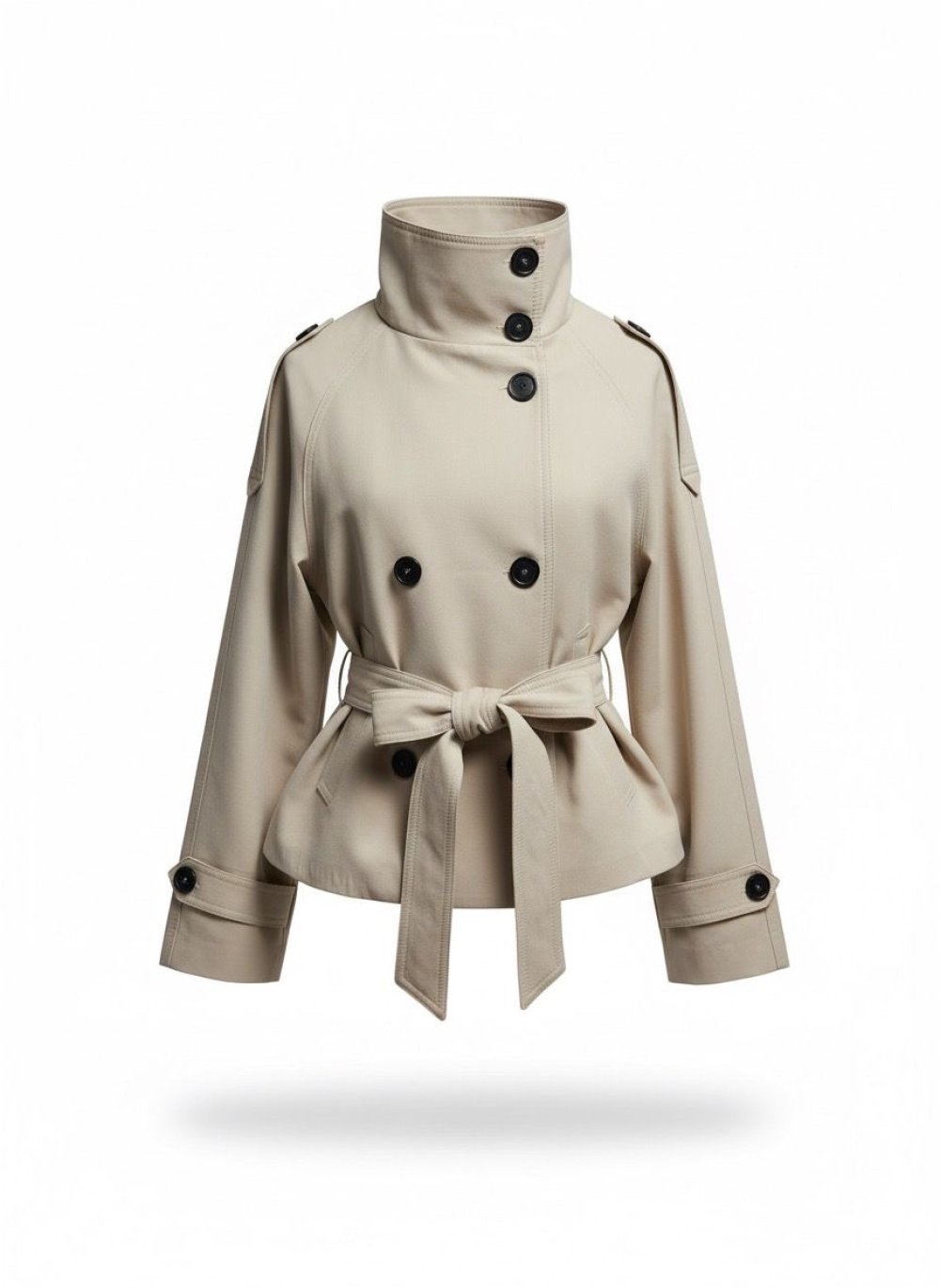 Bu özel tasarım, klasik trenchcoat çizgilerini modern bir kaban ve mont estetiğiyle harmanlar. Mevsim geçişlerinde ideal koruma sağlarken, blazer ceket ağırlığında bir şıklık sunar. Kaliteli kumaş yapısı ve dökümlü kesimi sayesinde gün boyu konforlu bir kullanım deneyimi sağlar.