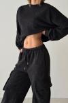 Andja Yıkamalı Kargo Cepli Alt Tasarım Eşofman Takımı Füme