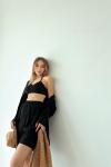 Aura Kırışmaz Ham Keten Şort+Gömlek Takım Siyah