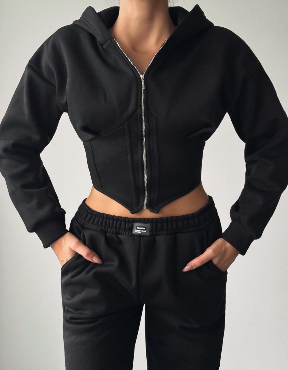 Biany Bel Korse Detaylı Eşofman Takımı Siyah