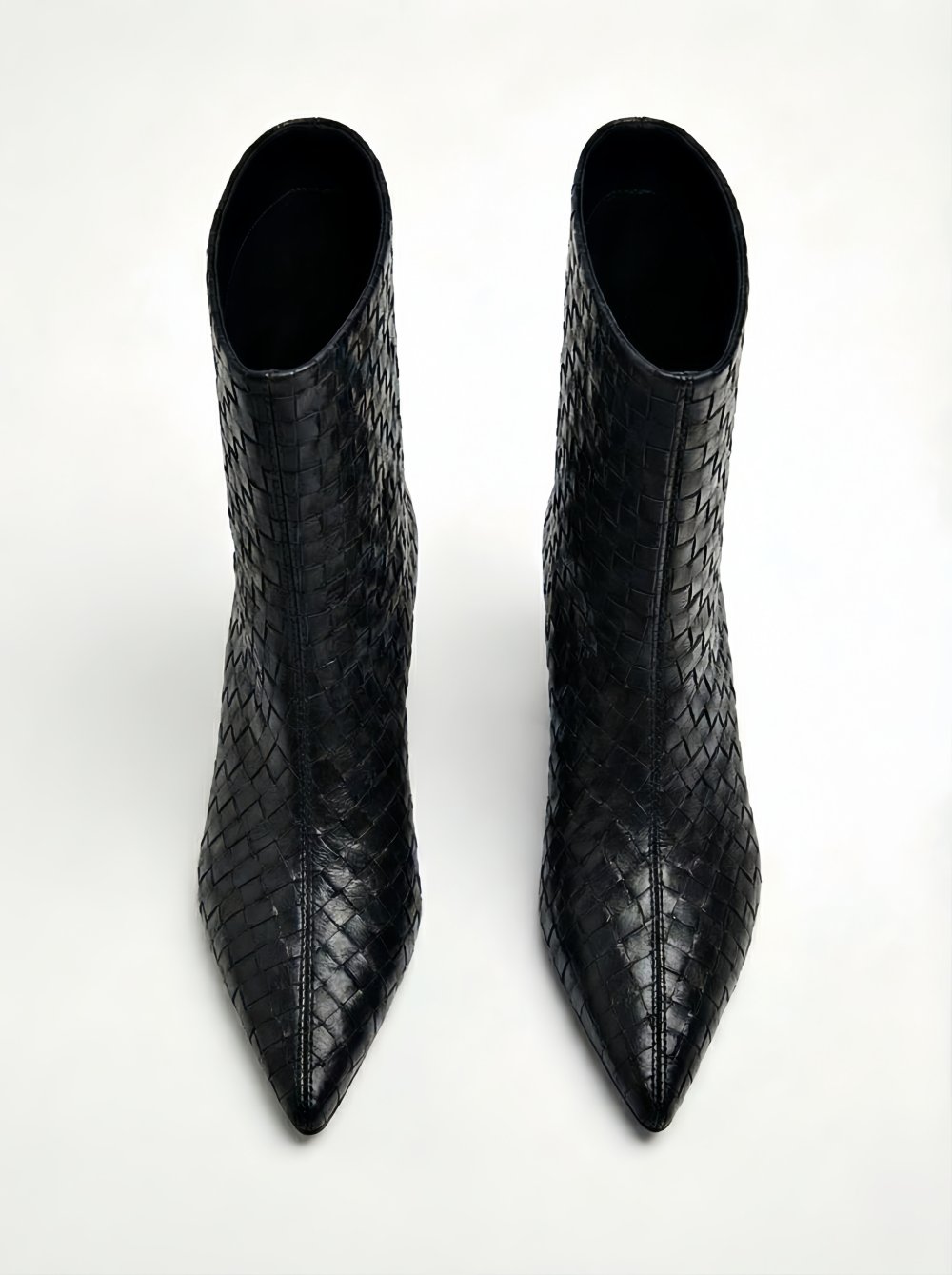 Kombinlerinizi bir üst seviyeye taşıyacak olan Botega desenli bot, kaliteli materyalleri ve zamansız siyah rengiyle her sezon favoriniz olacak. ?