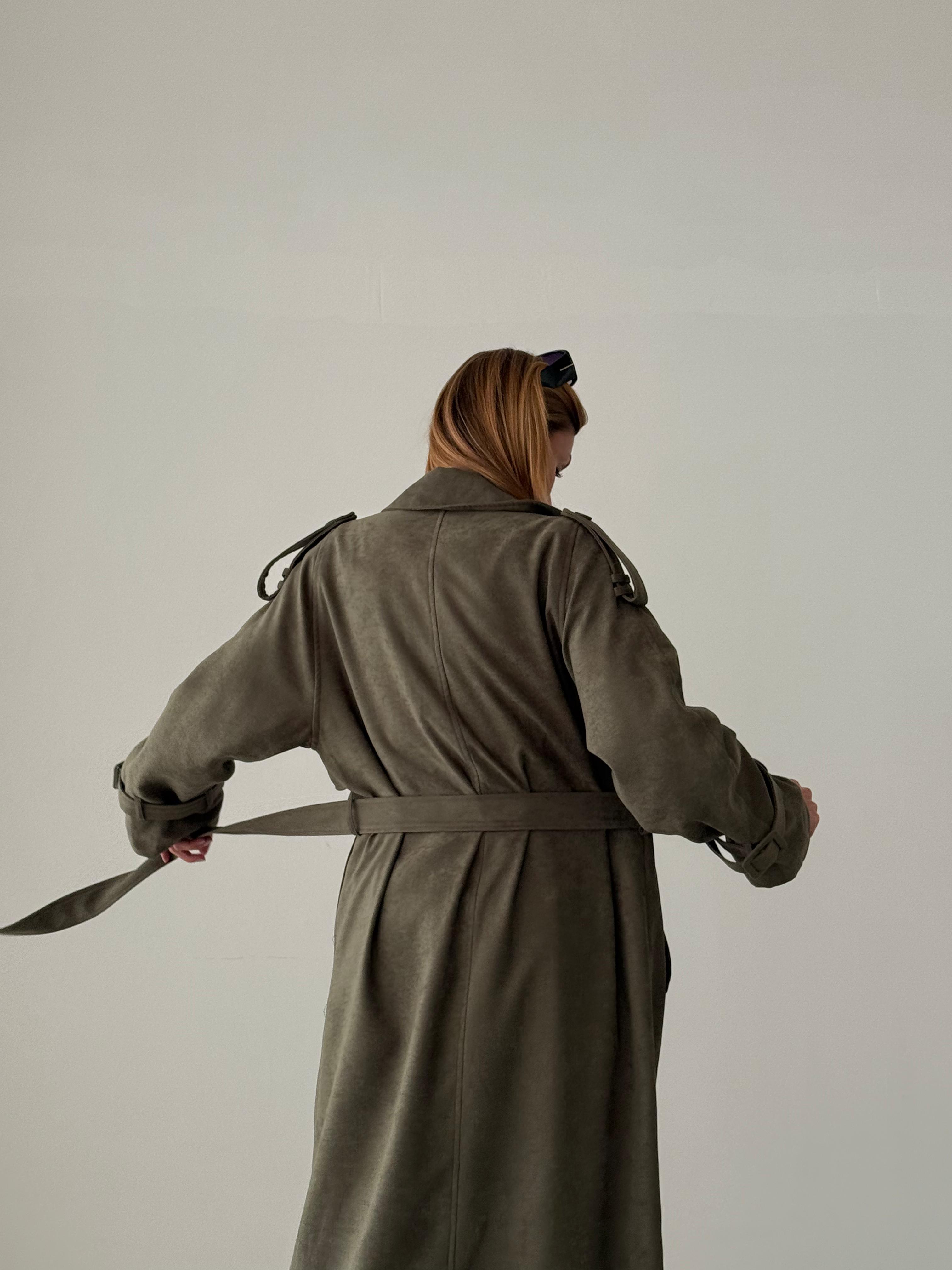 Branka Maxi Boy Özel Üretim Süet Trençkot Haki