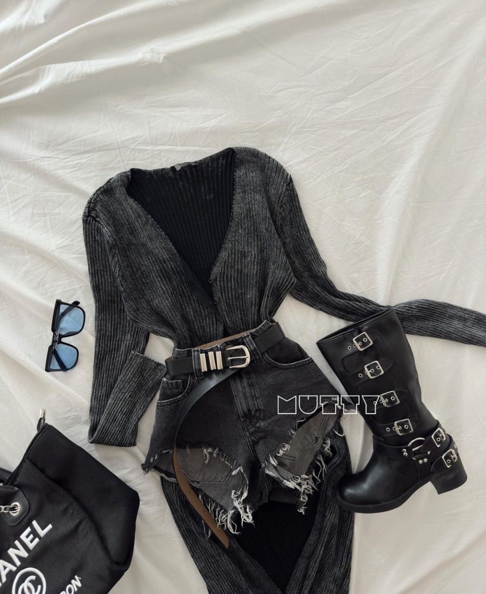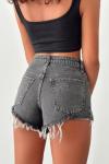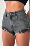 Camily Mom Paça Püsküllü Jean Şort Antrasit