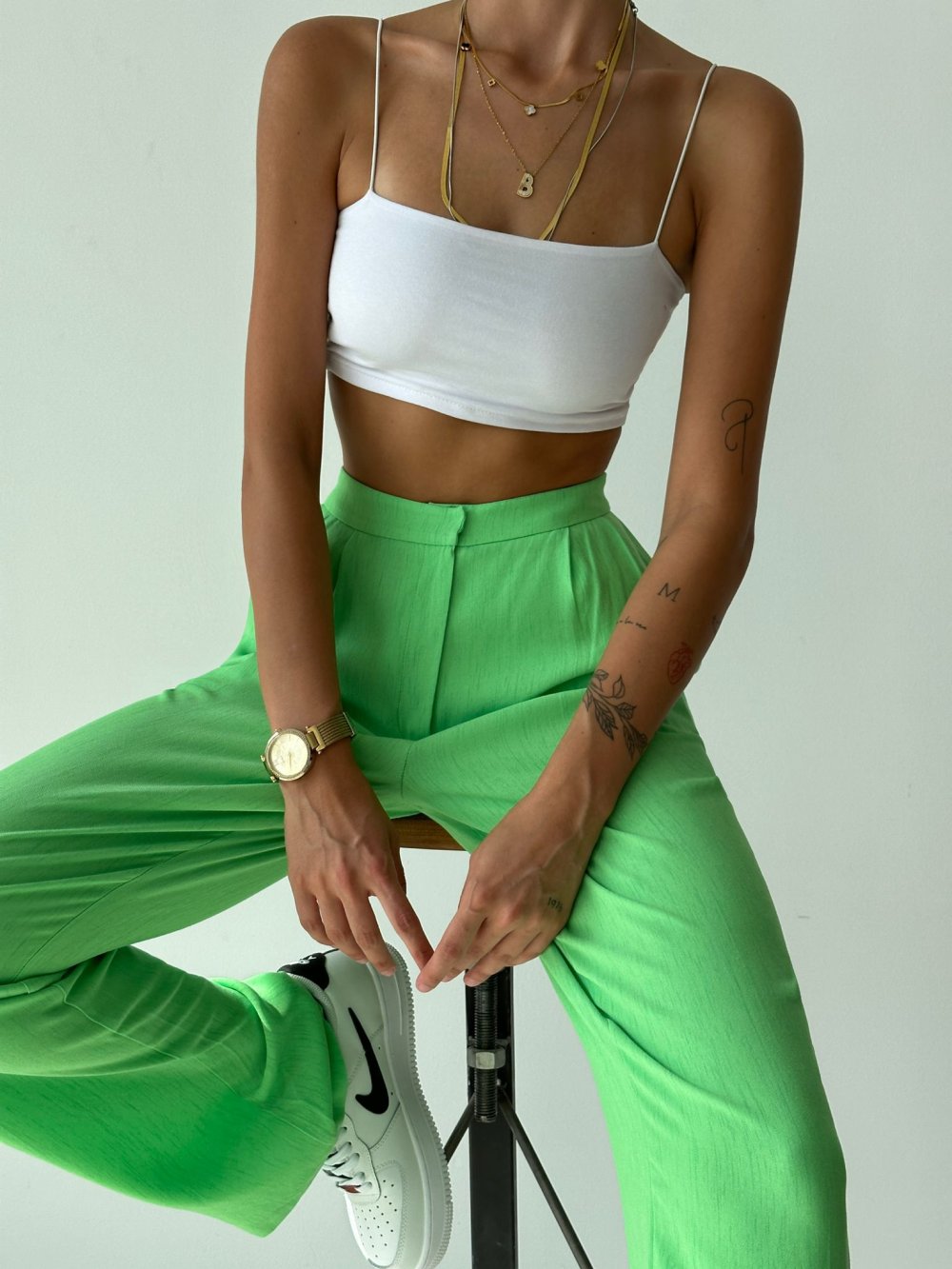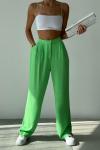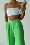 Chisel Yüksek Bel Ham Keten Palazzo Pantolon Fıstık Yeşili