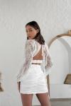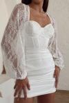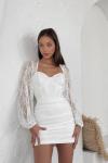Dalvin Gloplu Sırt Dekolteli Tasarım Elbise Beyaz