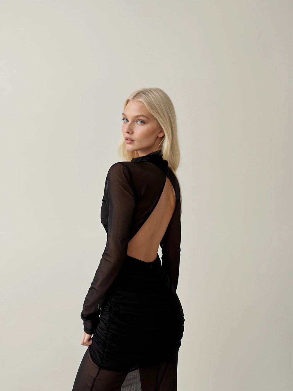 Doha Transparan Detaylı Sırt Dekolteli Tasarım Elbise Siyah