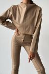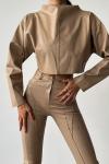 Eleta Tasarım Deri Bluz Sütlü Kahve