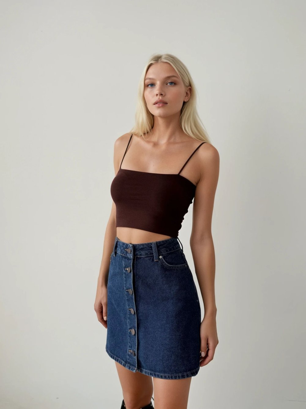Elien Ön Düğmeli Jean Etek Lacivert