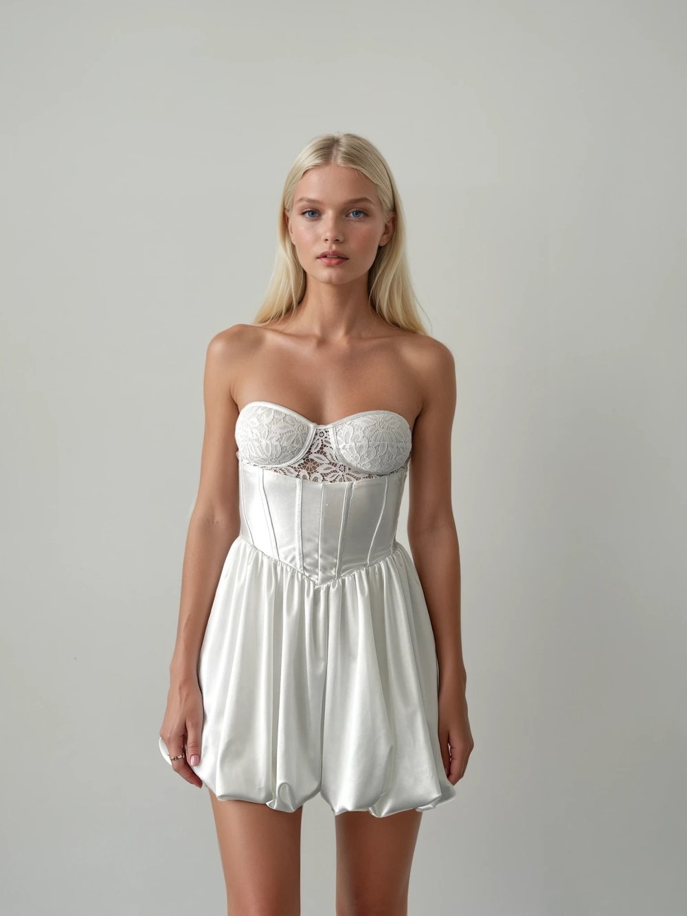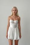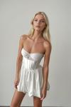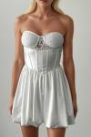 Eliza Korseli Sirt Detayli Saten Balon Etekli Elbise Beyaz