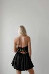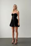 Eliza Korseli Sirt Detayli Saten Balon Etekli Elbise Siyah
