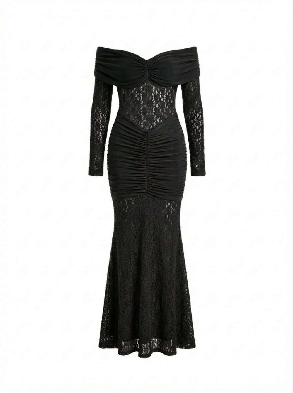Elva Güpürlü Prenses Yaka Elbise Siyah