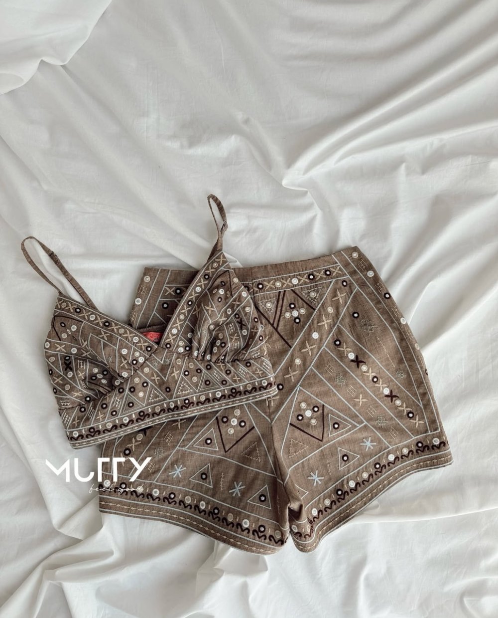 Etnik Desen Full Nakisli 2li Set Bej