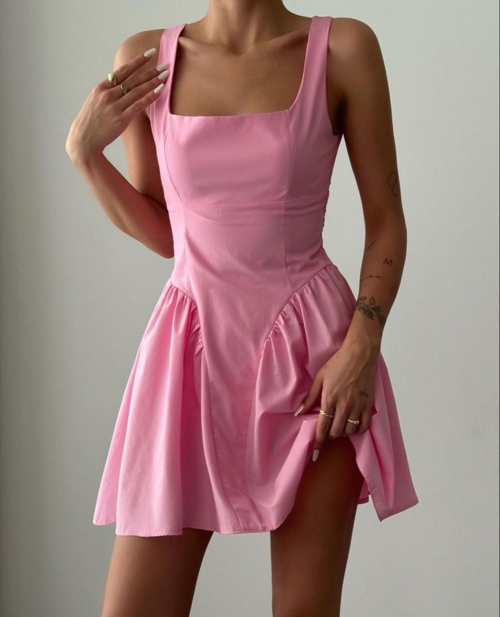 Fleur Arkası Kuşaklı Poplin Elbise Pembe