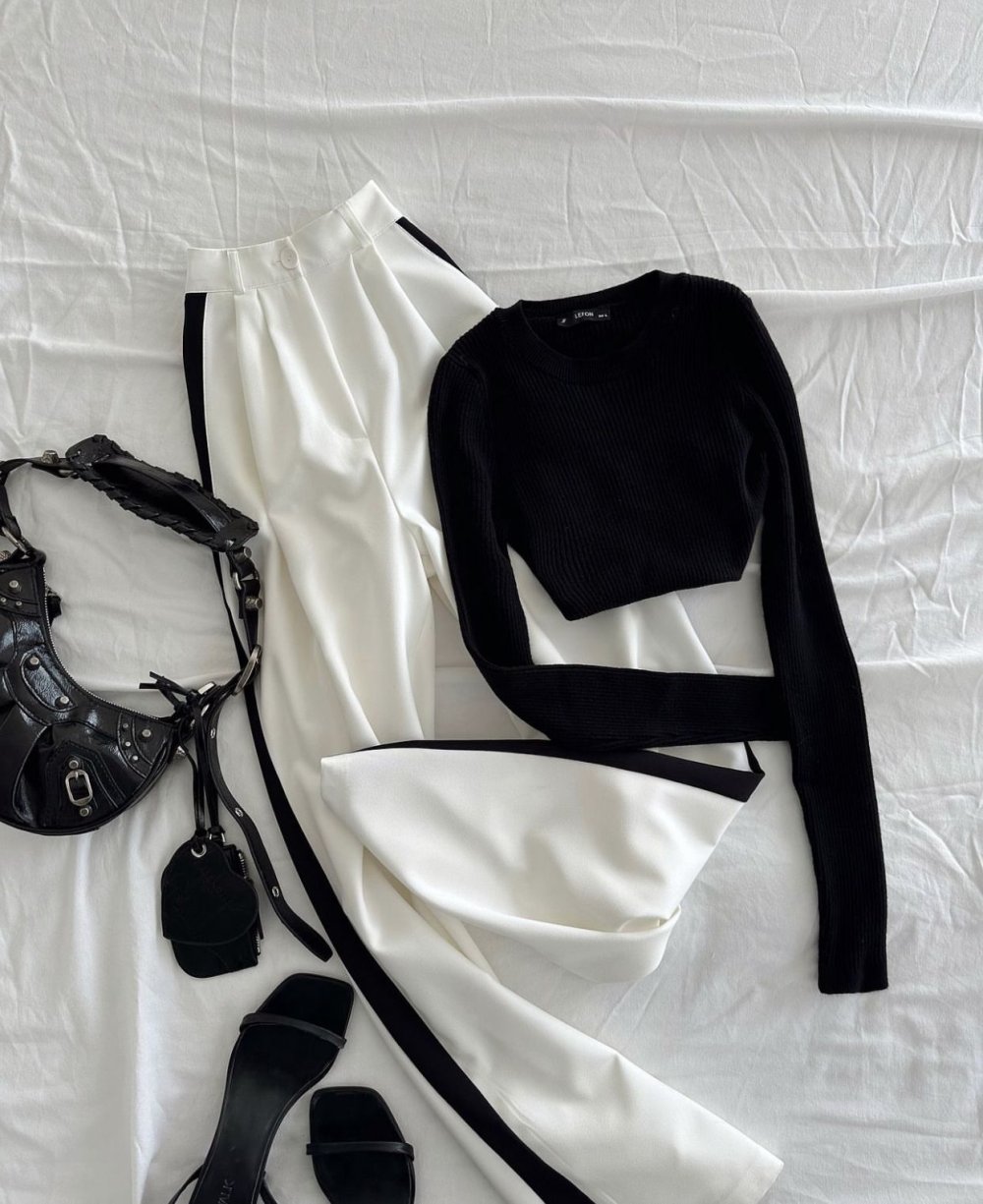 Halerie Palazzo Pantolon Beyaz Siyah