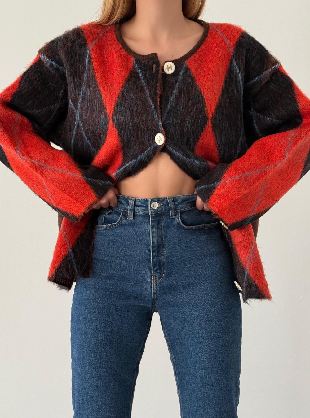 Henda Baklava Desen Yün Örme Hırka Siyah