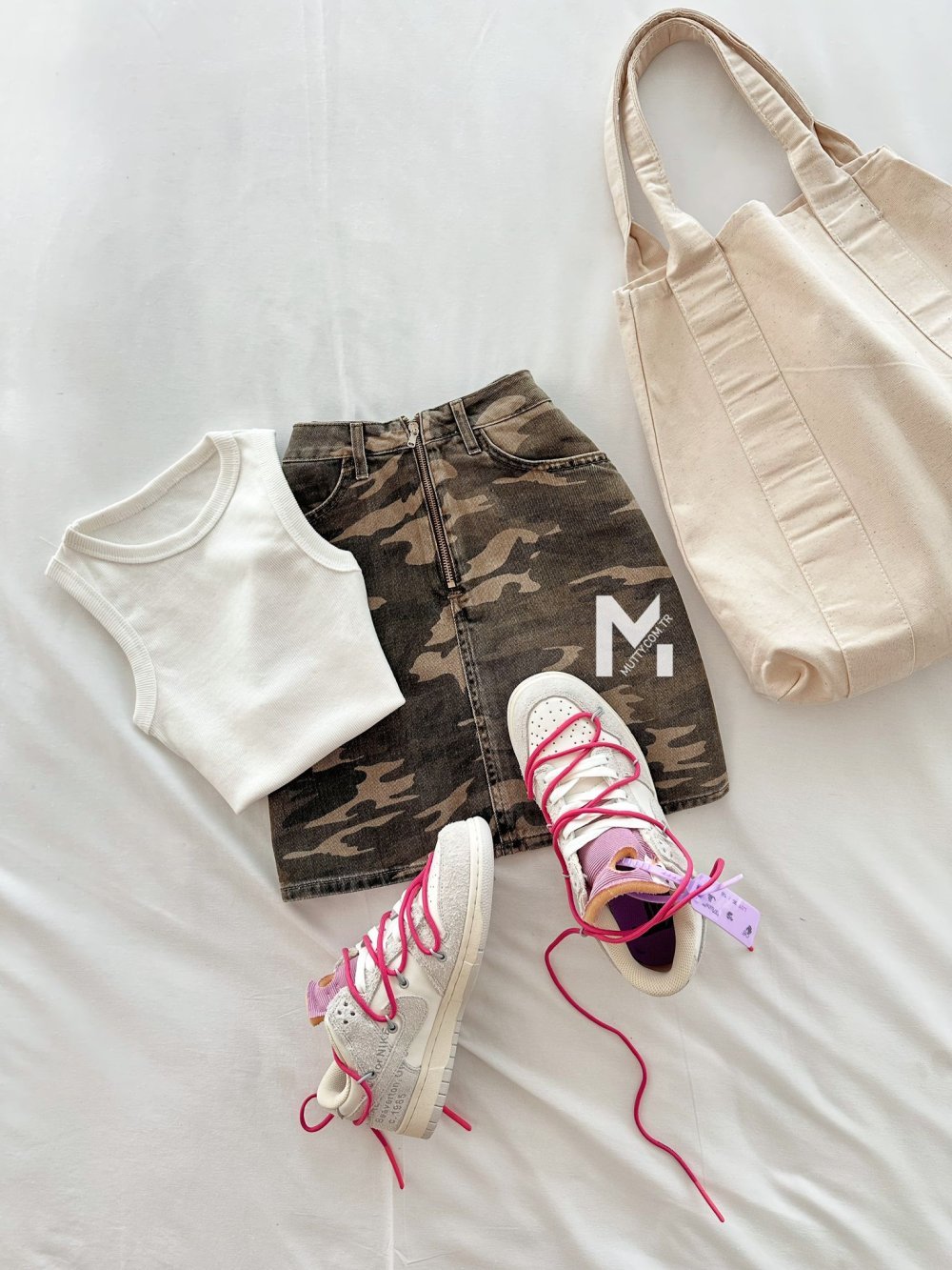 Hobby Yarım Fermuar Kamuflaj İthal Etek Plus Size Haki