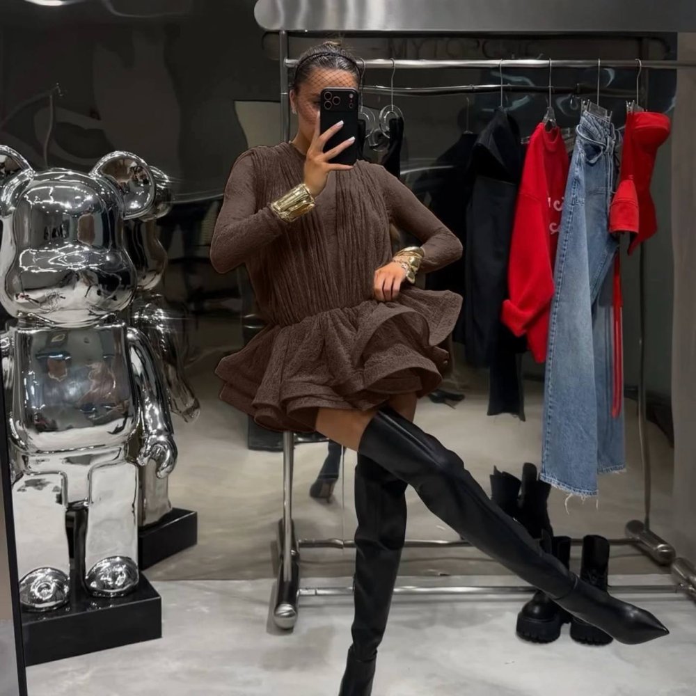 Jandal Kabarık Etekli İçi Şortlu Elbise Kahverengi
