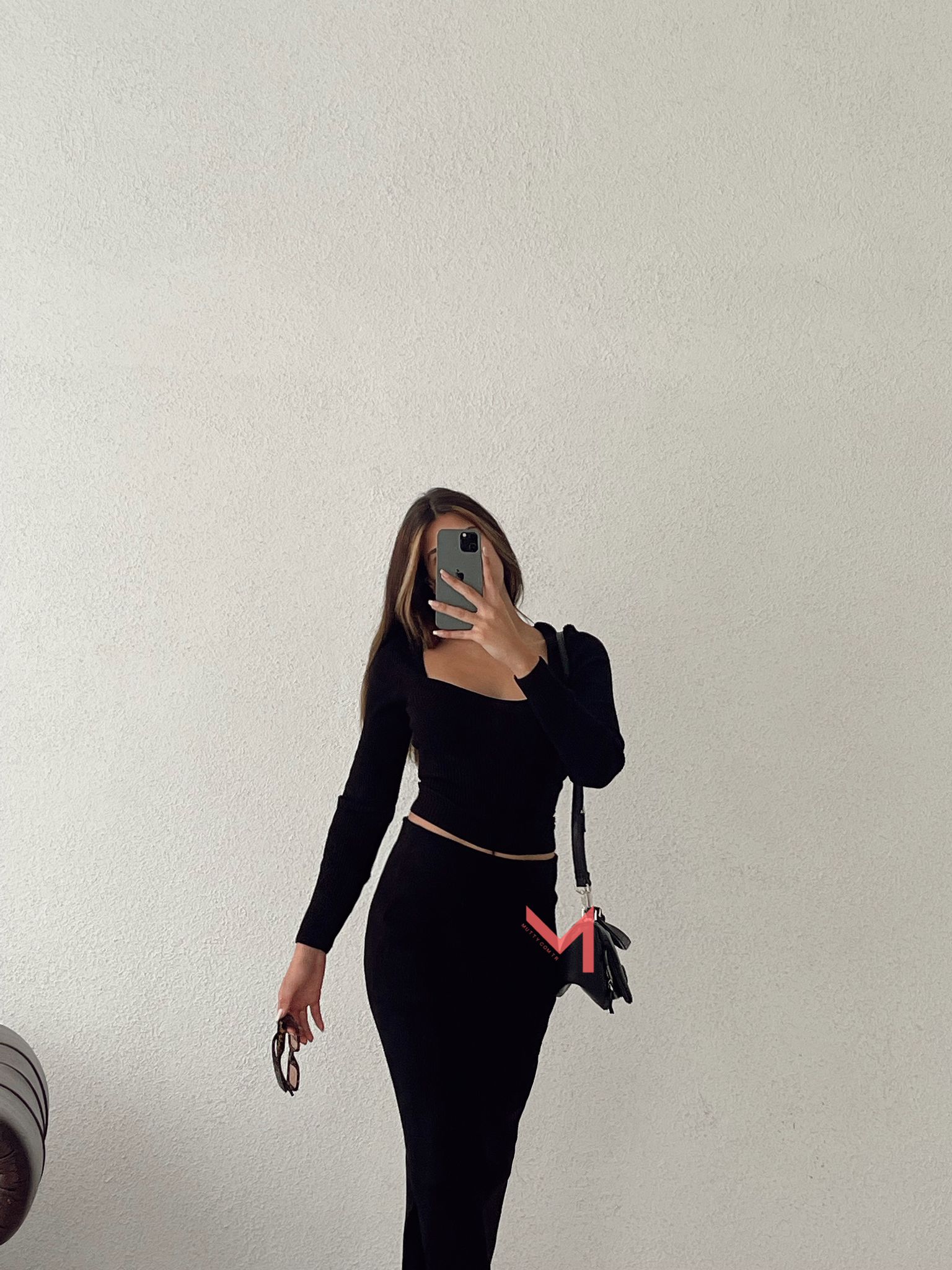 Jane Maxi Etekli İkili Triko Takım Siyah