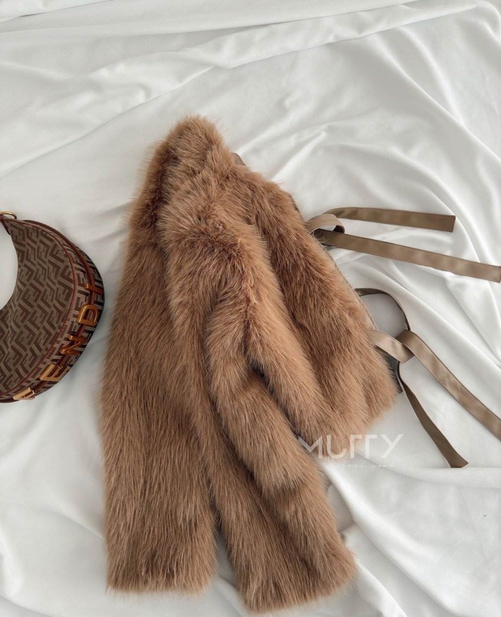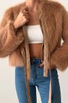 Jeny Önü Bağlamalı Deri Detaylı Premium Kürk Bej