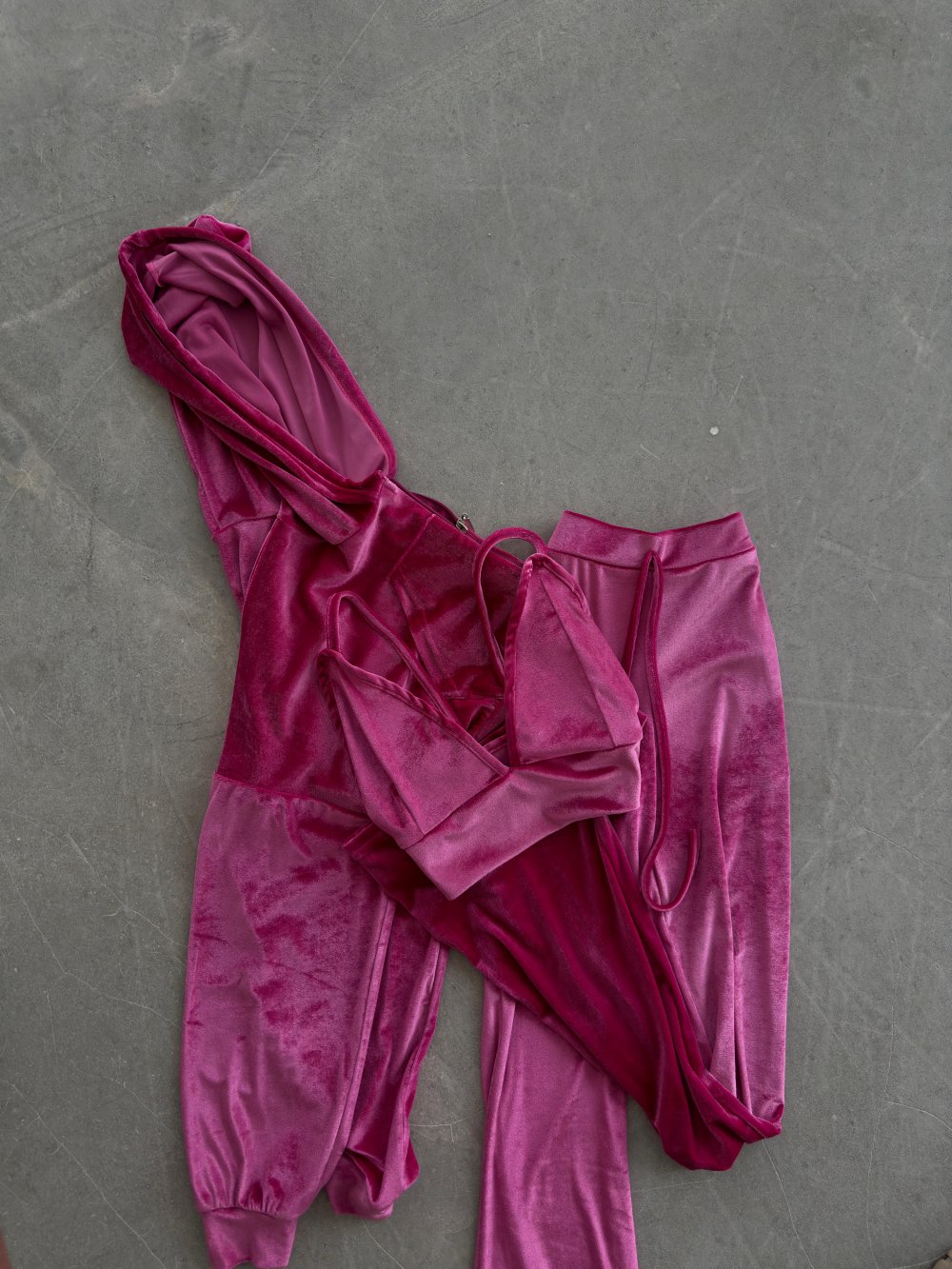 Kadife Crop + Ceket + Pantolon 3lü set Elona Pembe