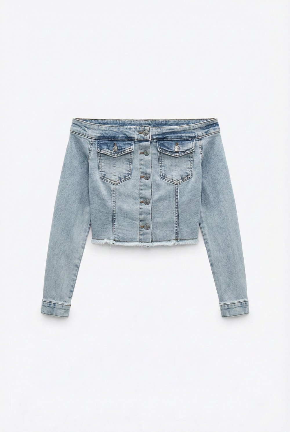 Karina Madonna Yaka Denim Ceket Açık Mavi