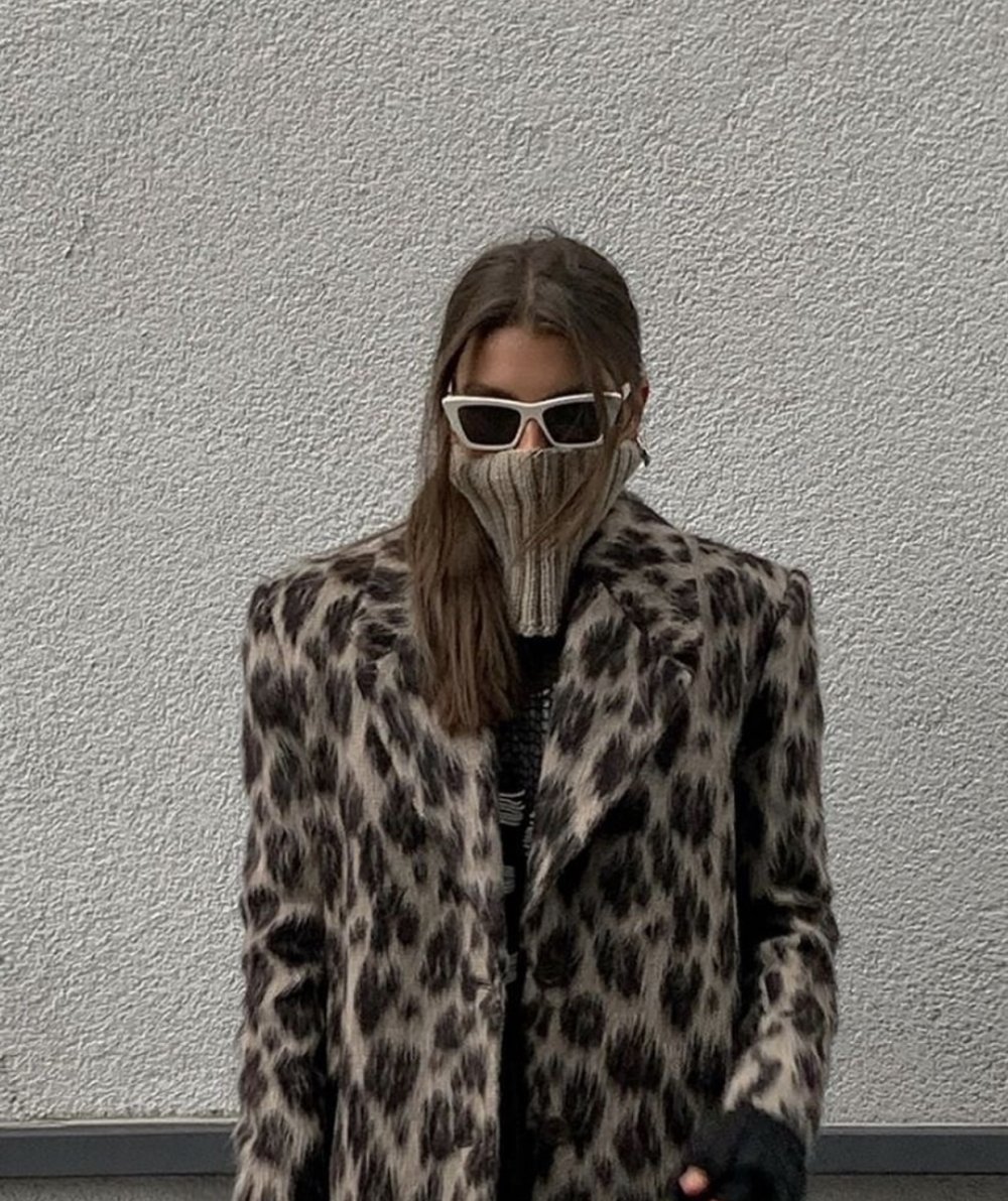 Kaylin Leopar Desen Kaşe Blazer Vizon