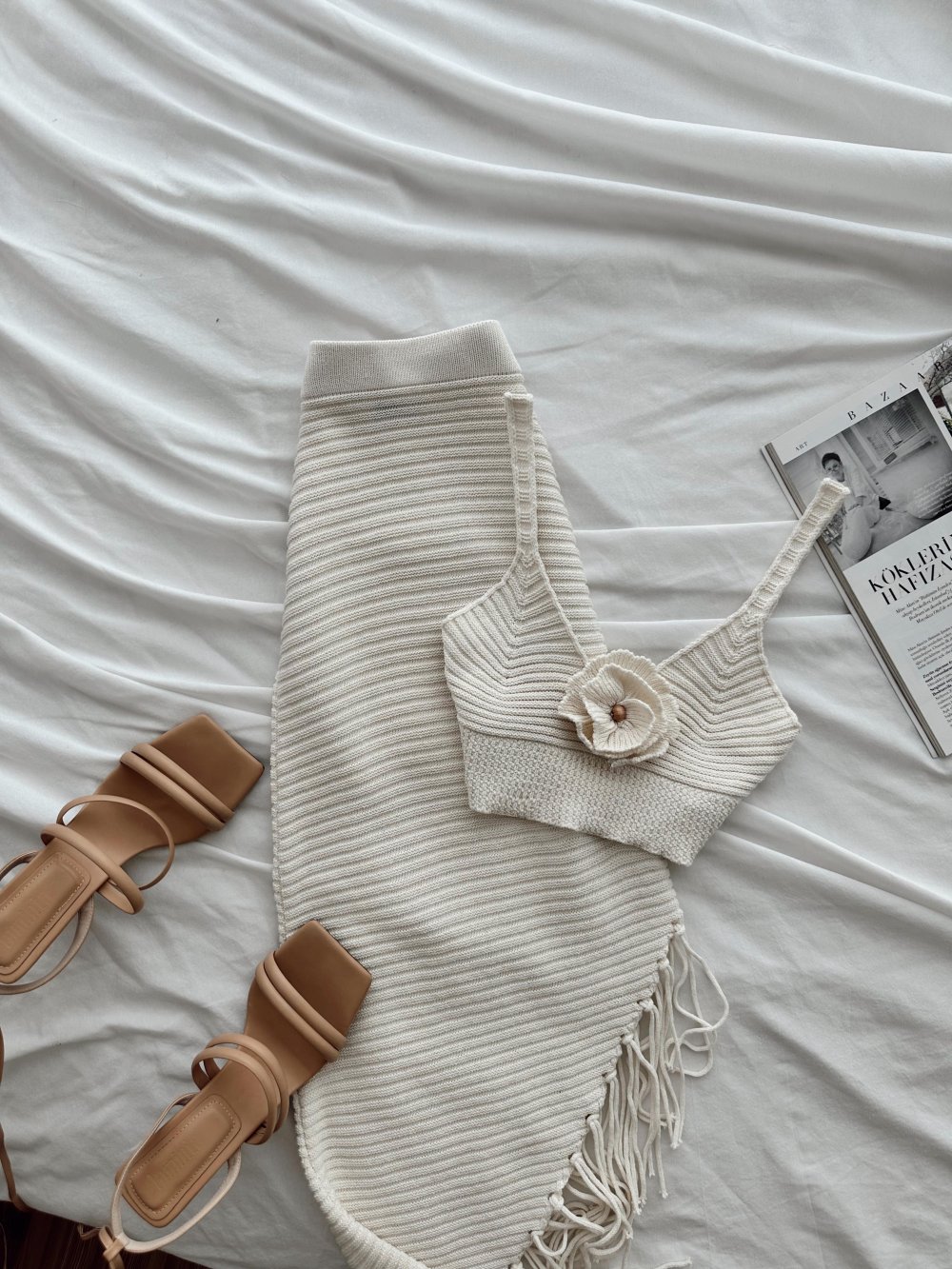 Keitha Etek+Crop İkili Triko Takım Ekru