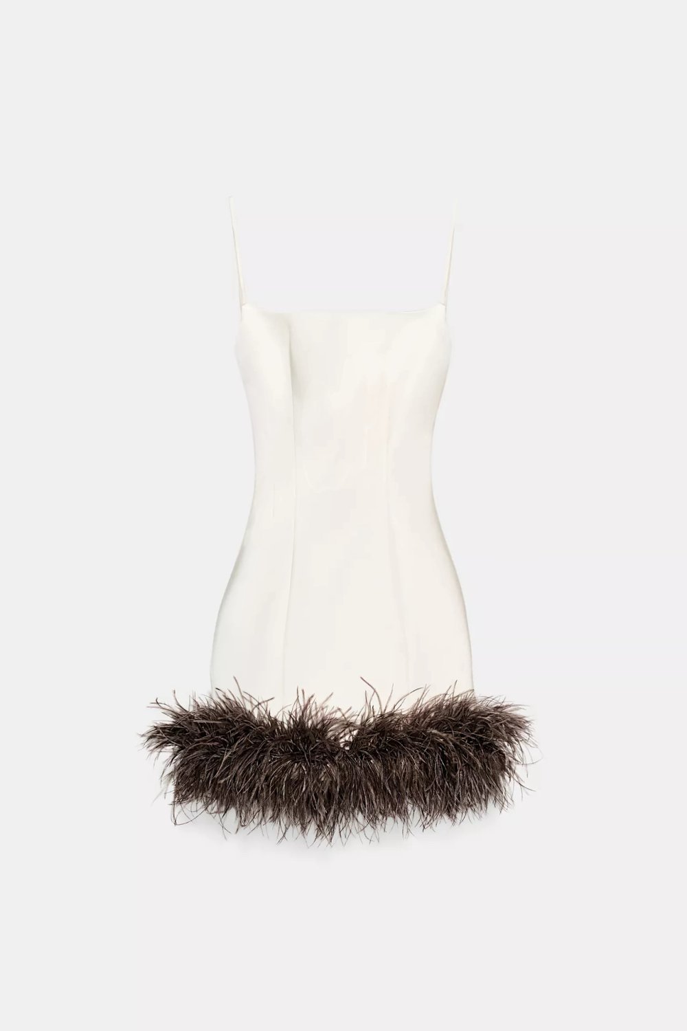 Khira Etek Ucu Tüylü Sırt Dekolteli Elbise Ekru