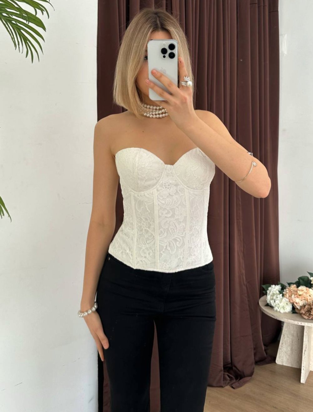 Vücut hatlarını zarifçe vurgulayan korse yapısı, straplez kesimiyle omuzlarınızı ön plana çıkarır. Yüksek kaliteli kumaş dokusu ve detaylarındaki ince işçilik, bu parçayı gardırobunuzun en joker ve iddialı ürünlerinden biri haline getirir.