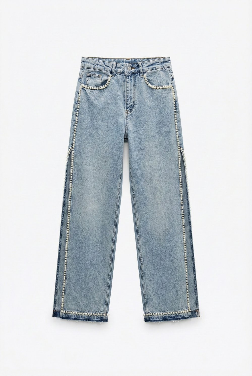 Lara Yanlari incili Yirtmacli Salas Pantolon Mavi