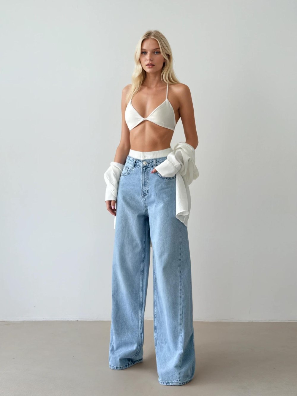 Laysa Boxerlı Yüksek Bel Palazzo Pantolon Mavi