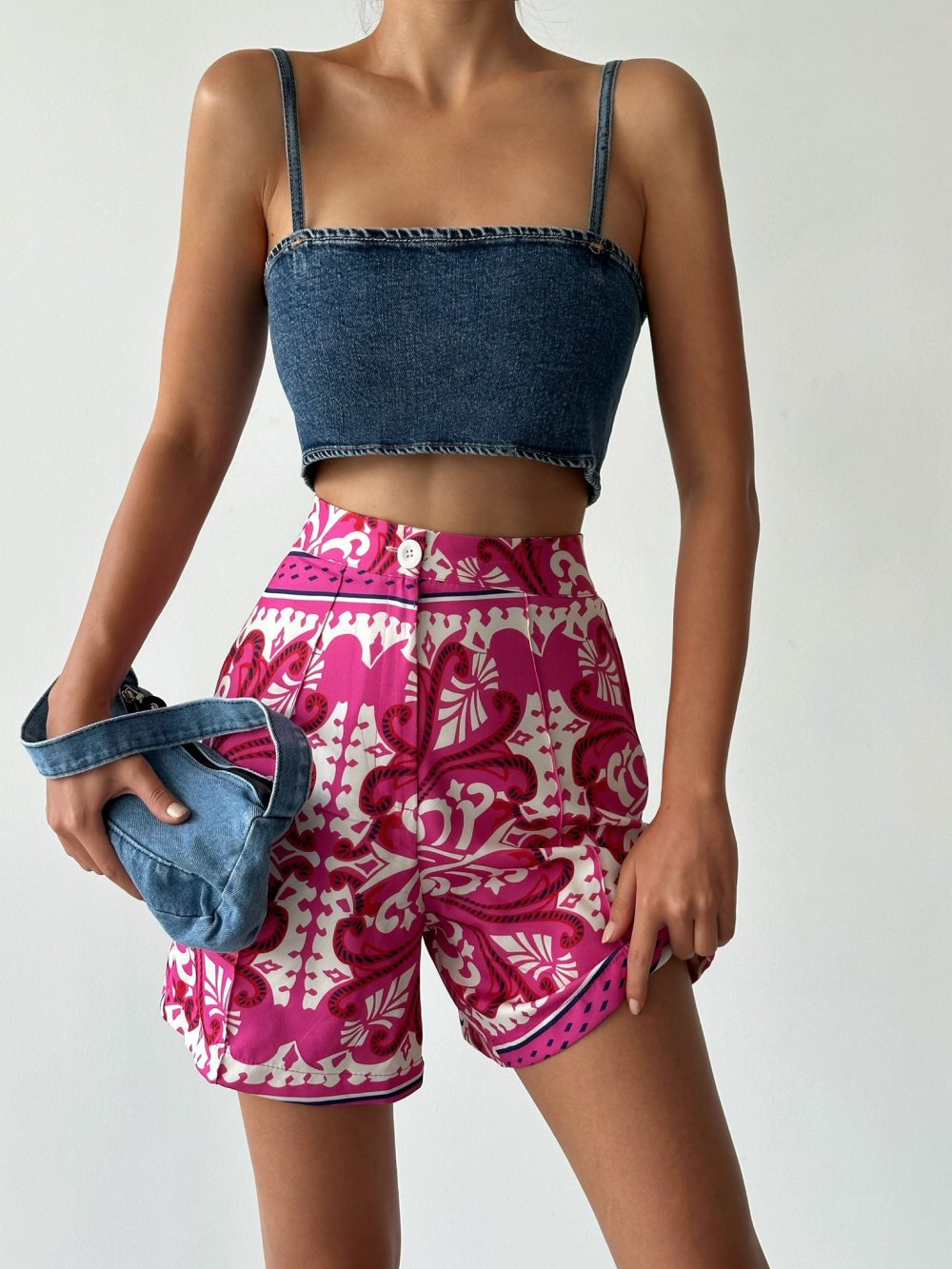 Liana Yüksek Bel Etnik Desen Şort Fuşya