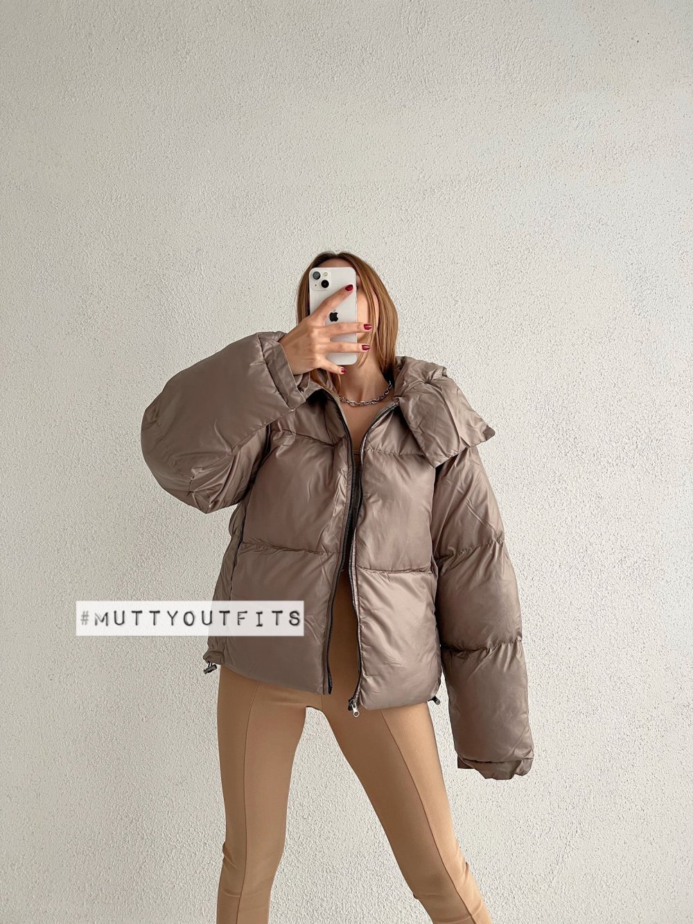 Mariya Yüksek Yaka Puffer Şişme Mont Vizon