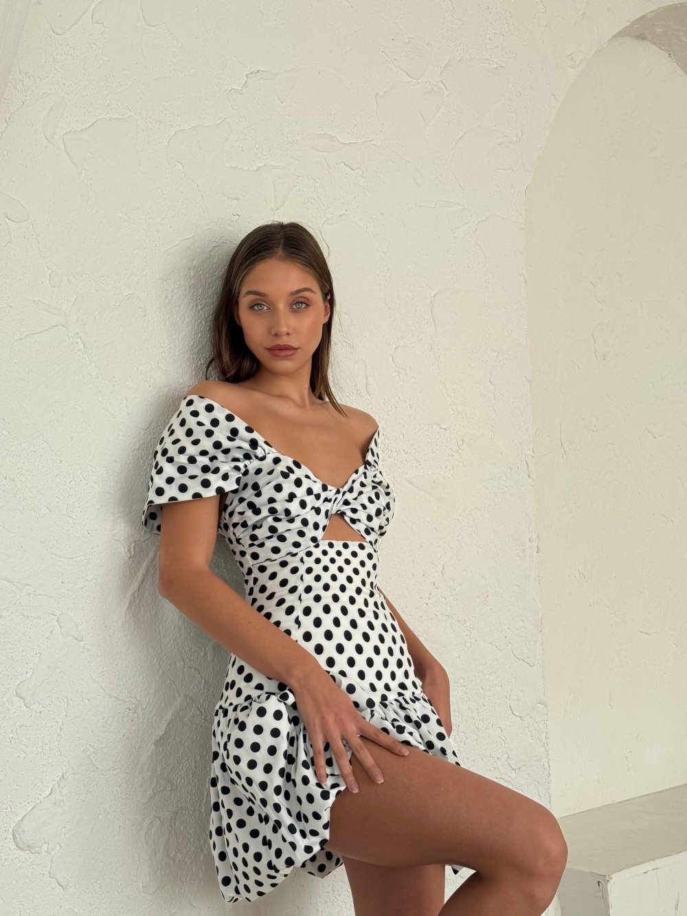 Melina Puantiyeli Balon Elbise Beyaz
