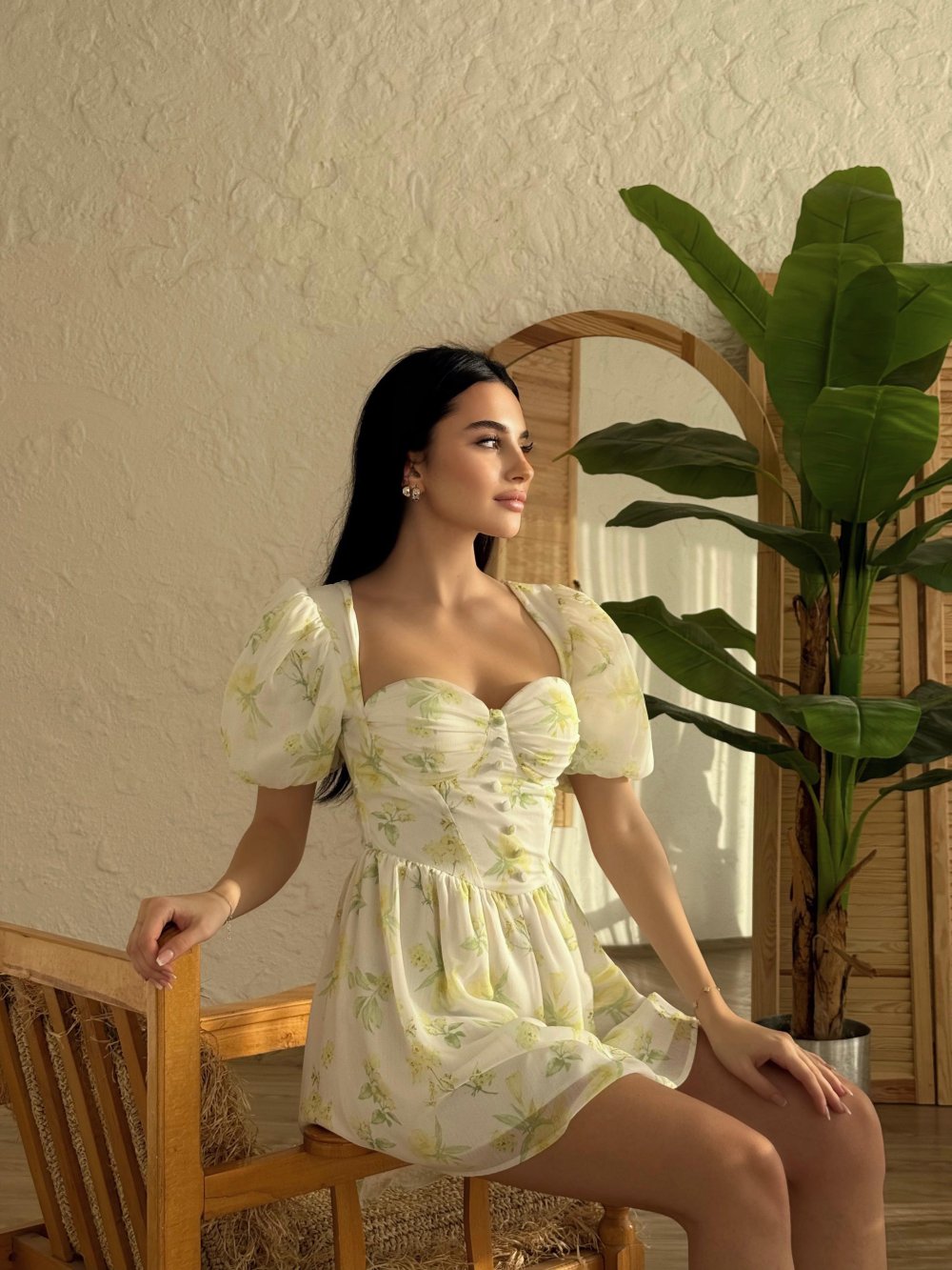 Morice Gloplu Çiçekli Elbise Sarı