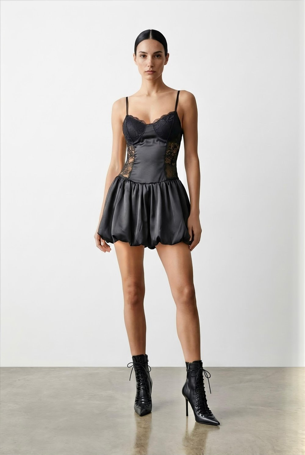 Zarafeti ve modern tasarımı bir araya getiren Mutty Munie Dantel Detaylı Balon Etekli Elbise, gardırobunuzun en ikonik parçalarından biri olmaya aday. Siyahın zamansız asaletini dantel detayları ve hacimli balon etek kesimiyle birleştiren bu tasarım, her ortamda dikkatleri üzerinize çekmenizi sağlar.