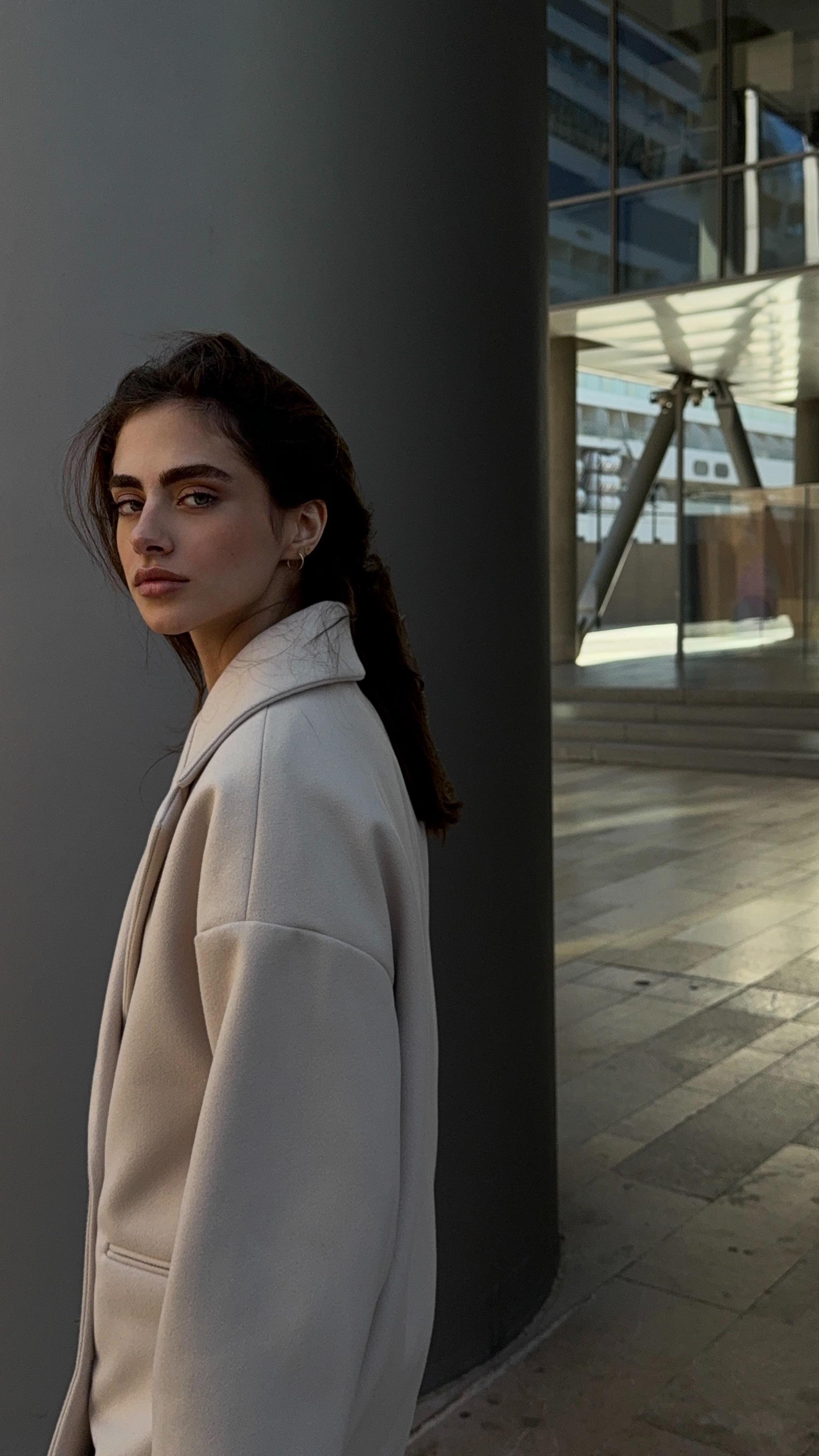Natali Kruvaze İç Astarlı Kaşe Kaban Bej