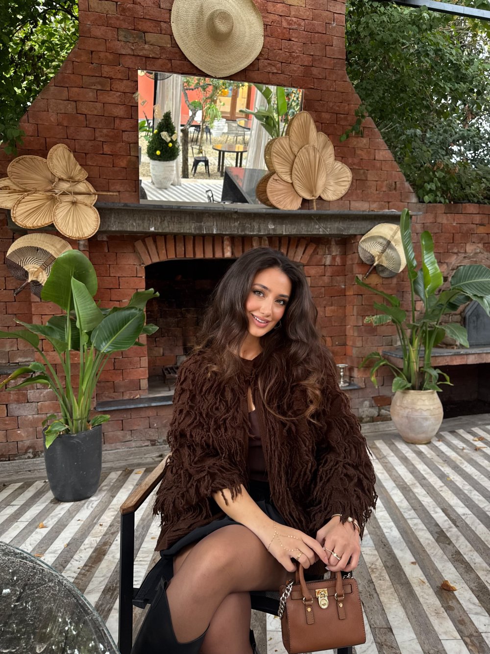 Mutty Nasty Saçaklı Kahverengi Triko Hırka ile Tarzınızı Yansıtın