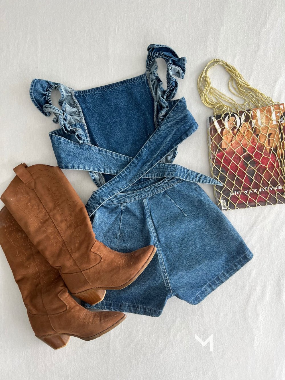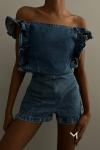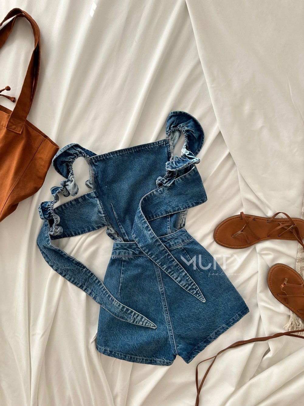Neoma Askılı Şortlı İthal Tulum Mavi