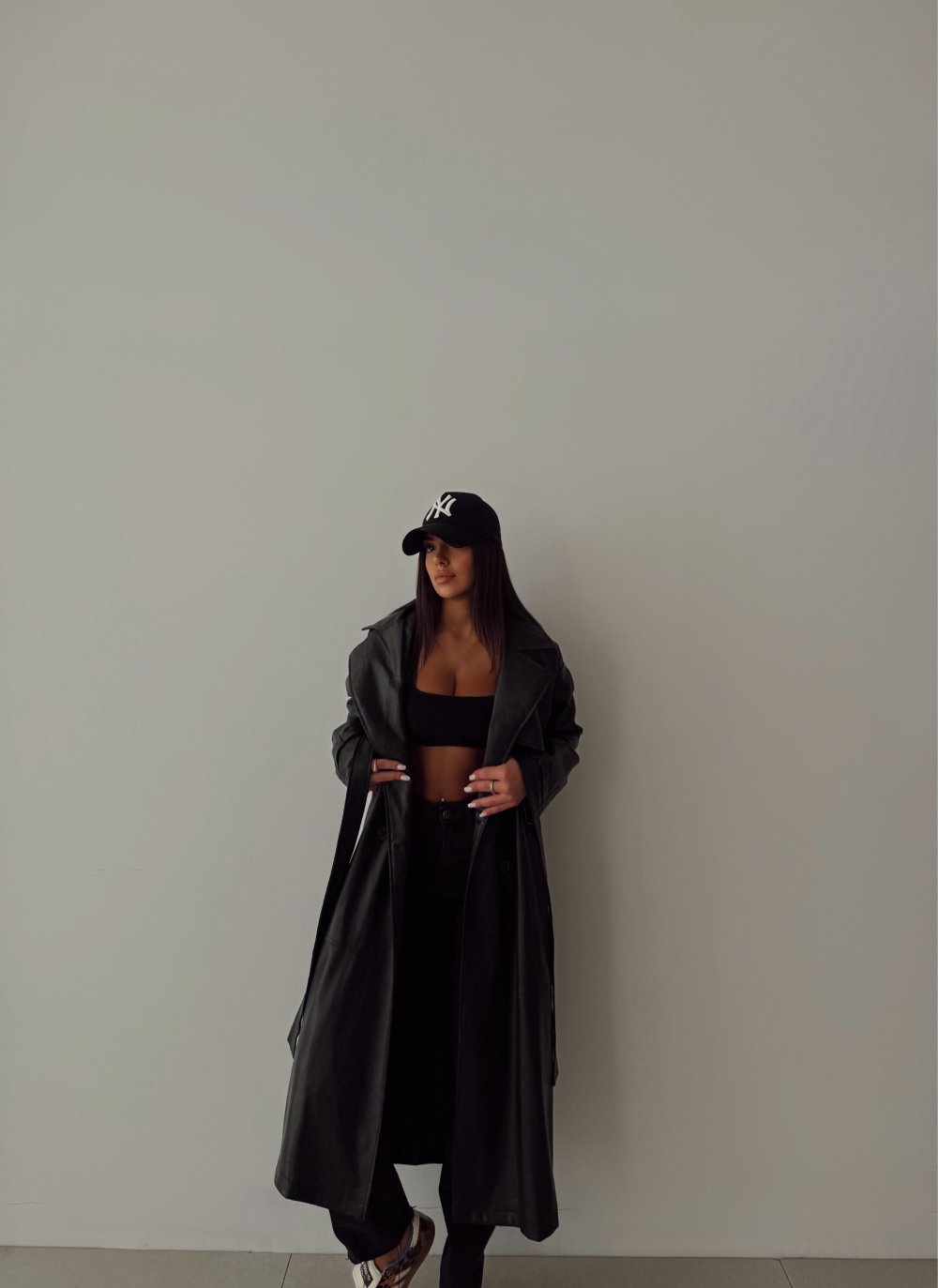 Nevana Kuşaklı İç Astarlı Deri Trençkot Siyah
