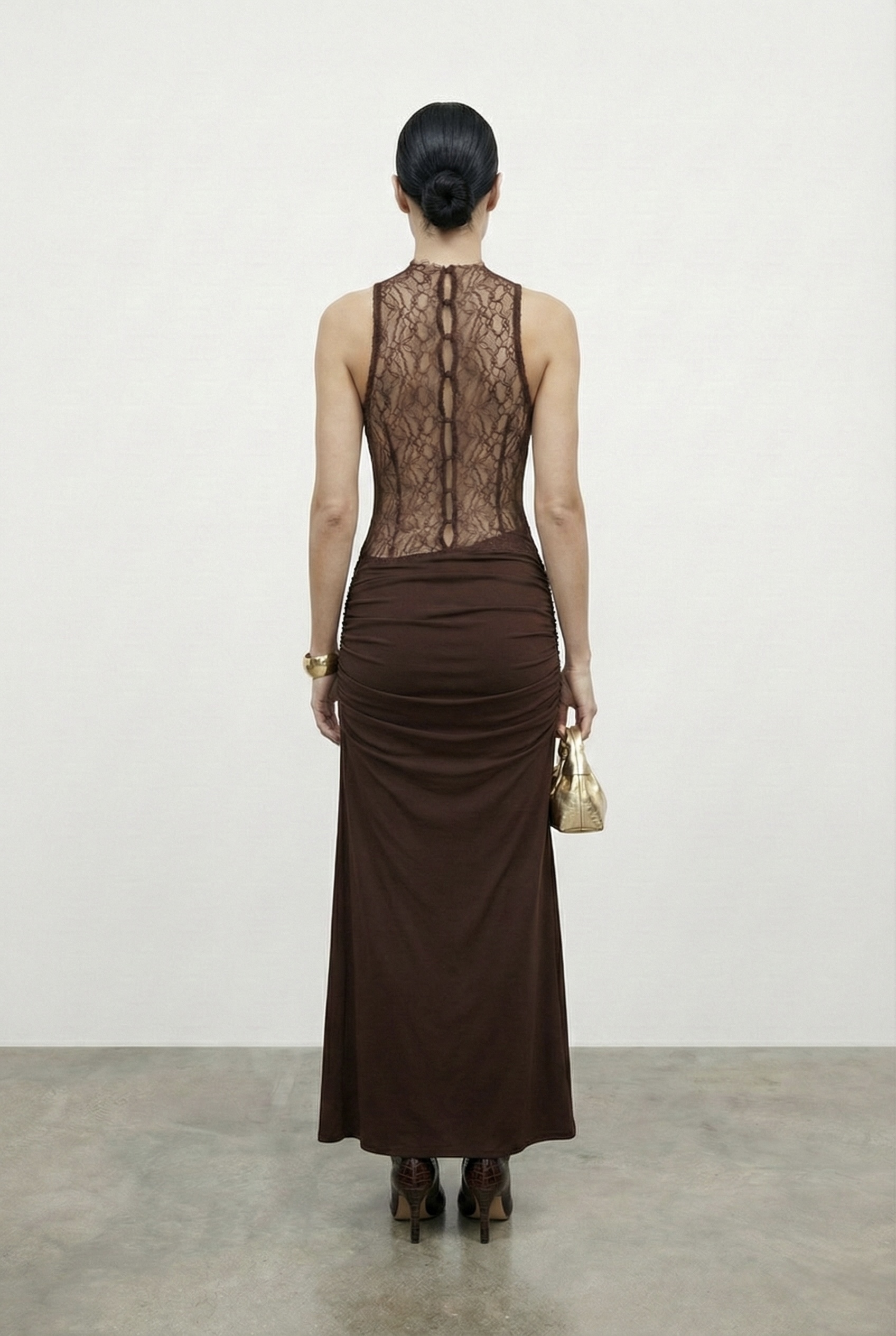 Paula Sırt Dekolteli Tasarım Elbise Kahverengi