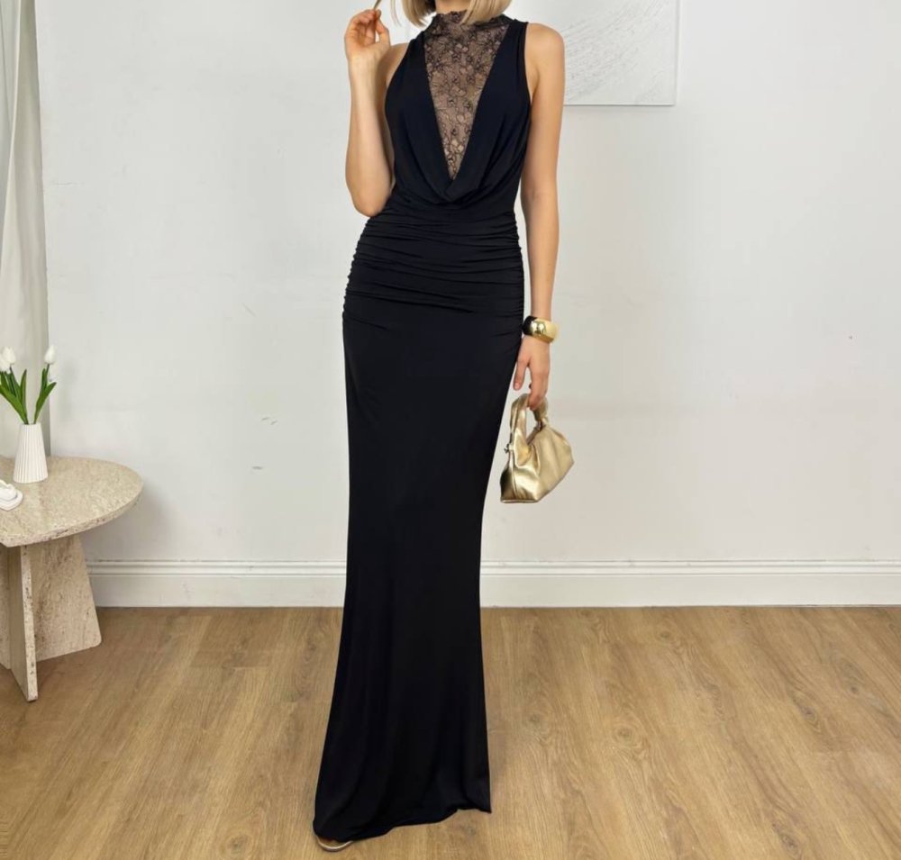 Paula Sırt Dekolteli Tasarım Elbise Siyah