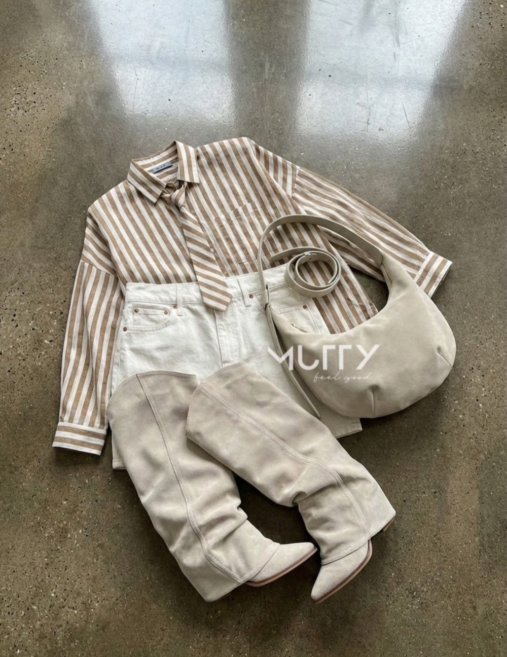 Pesaro Kravatlı Çizgili Gömlek Bej