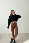 Riva Bel Zincirli Deri Pantolon Taba