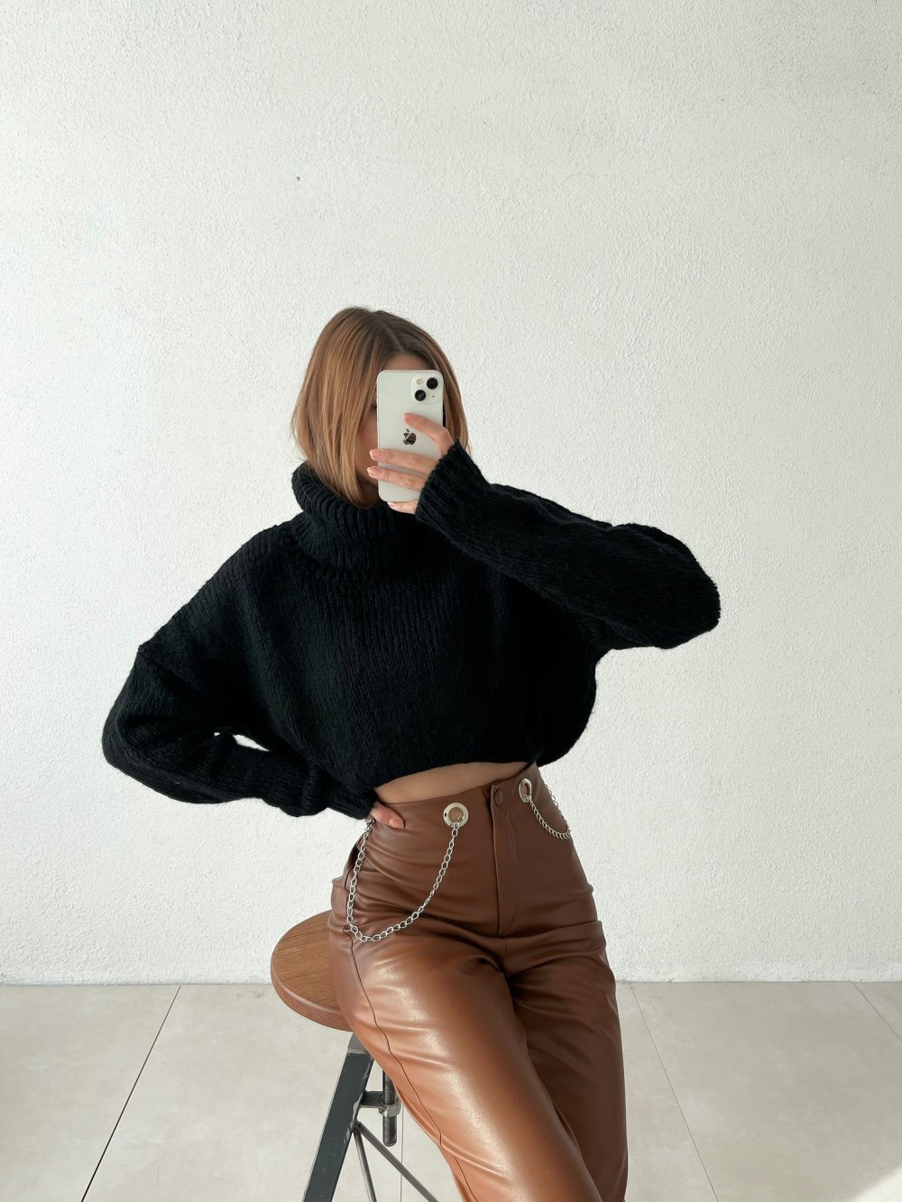 Riva Bel Zincirli Deri Pantolon