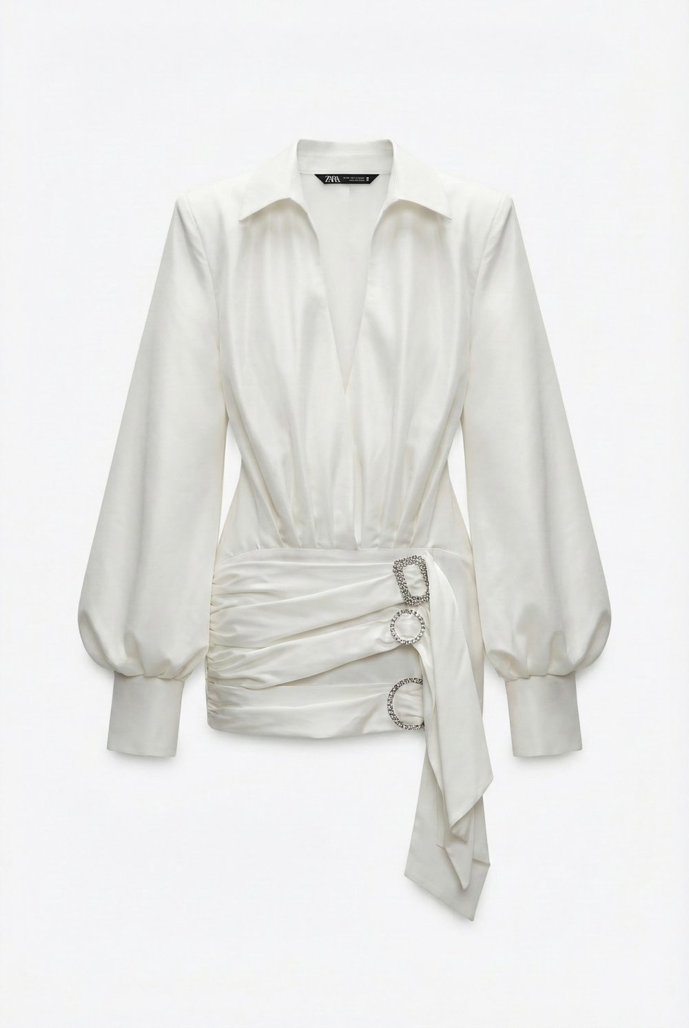 Ronda Broşlu Tasarım Saten Elbise Beyaz