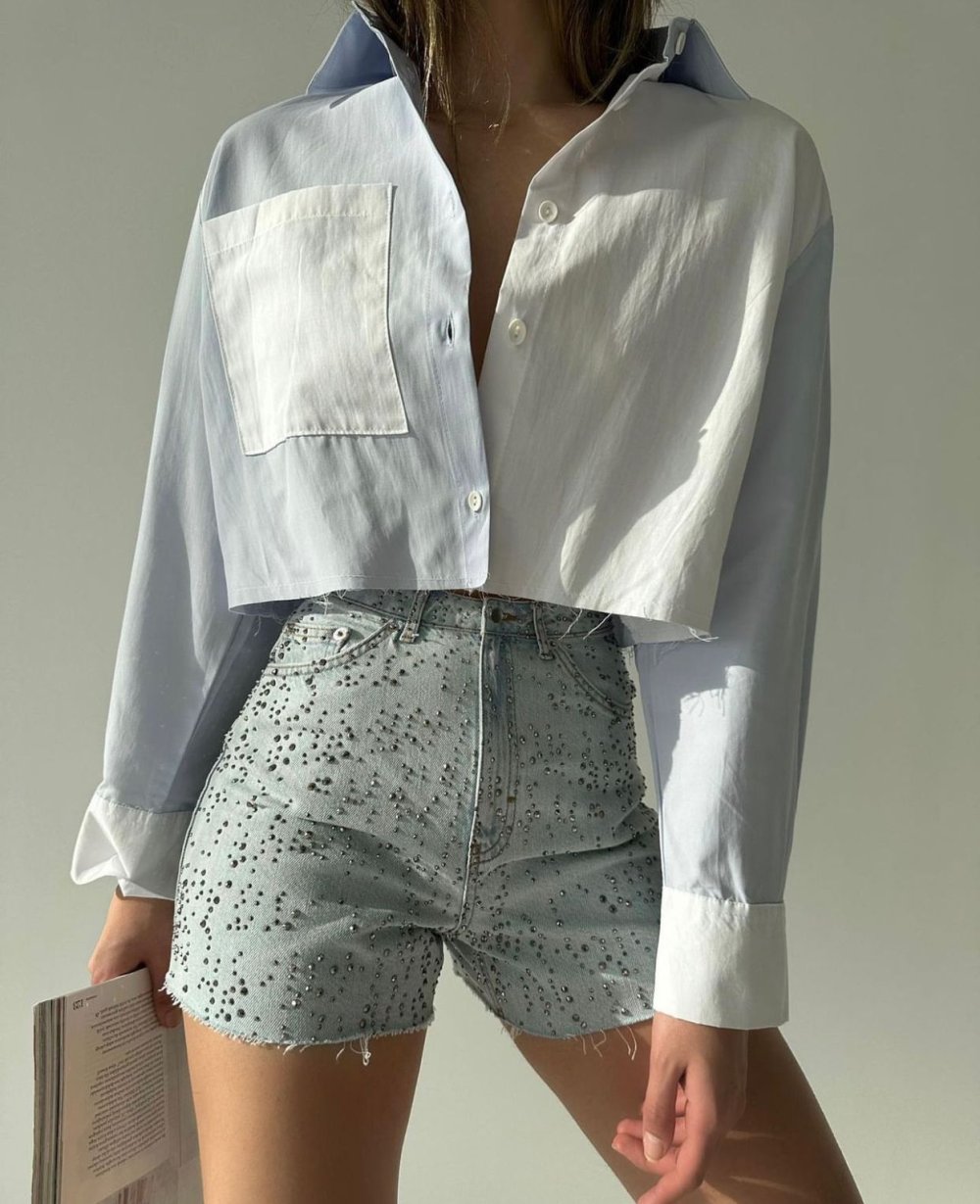 Serry Çift Renk Poplin Crop Gömlek
