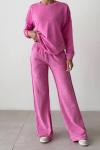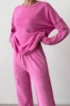 Shiny Yıkamalı Taş İşlemeli Eşofman Takımı Pembe